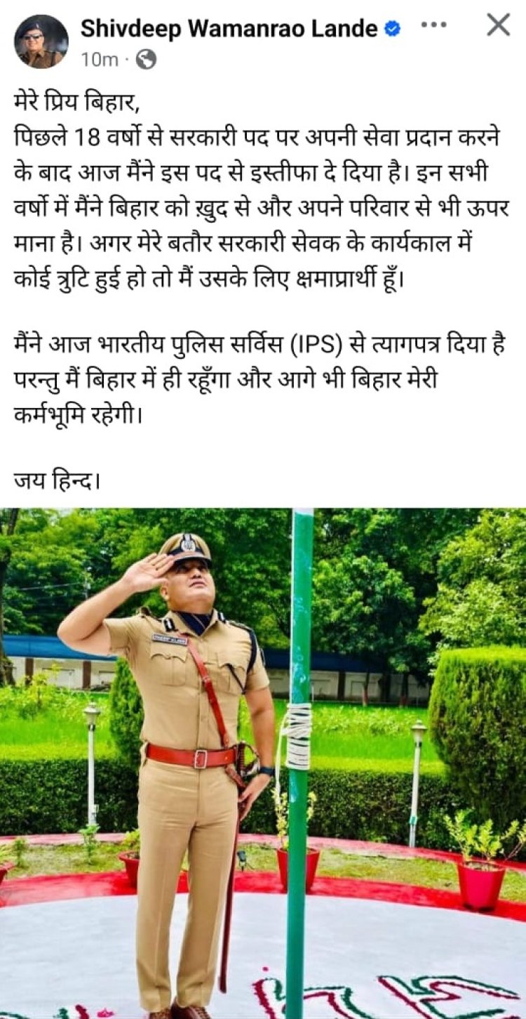 आईपीएस अधिकारी शिवदीप लांडे ने अचानक भारतीय पुलिस सेवा से इस्तीफा देकर सबको चौंका दिया। पूर्णिया रेंज के आईजी पद से इस्तीफा देने के बाद उन्होंने सिर्फ इतना कहा कि वे व्यक्तिगत कारणों से यह कदम उठा रहे हैं। उनके इस्तीफे से कई अटकलें लगाई जा रही हैं—कुछ लोग इसे उनके राजनीति में प्रवेश का संकेत मान रहे हैं, जबकि कुछ का मानना है कि यह पदस्थापन से असंतोष का नतीजा है। लांडे ने अपने फेसबुक पोस्ट में स्पष्ट किया कि वे बिहार में ही रहकर जनता की सेवा करते रहेंगे। उनके पत्र से इस्तीफे के पीछे छिपे कारणों पर सस्पेंस बना हुआ है, जिसका खुलासा वे भविष्य में करेंगे।